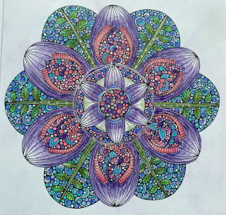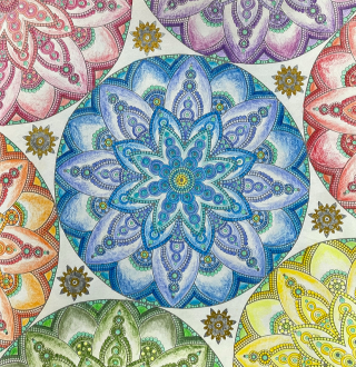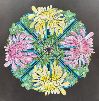 2016年8月から、2冊のマンダラ塗り絵を楽しんできて、「花々のマンダラ塗り絵」1冊、40作品完成!小さな達成感が大きな達成感となりました。