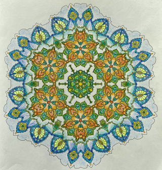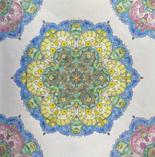 全46作品を塗りおえました。現在手元にある7冊のマンダラ塗り絵本の中で、一番細かな作図でした。買った当初は無理〜!って思っていましたが、やり終えた達成感は格別です。全作品を塗りおえたのは、『Flower