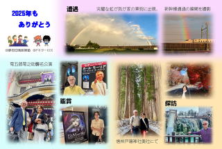 遭遇・観賞・探訪編 | 残された時間の価値を感じ、何事もやれるうちにやっておきたいと思い、二人で各地を探訪したり、演劇などの鑑賞に動き回った一年でした。生まれて初めて完全な虹に我が家で遭遇、アクセントに二つのマークを使いました。 |